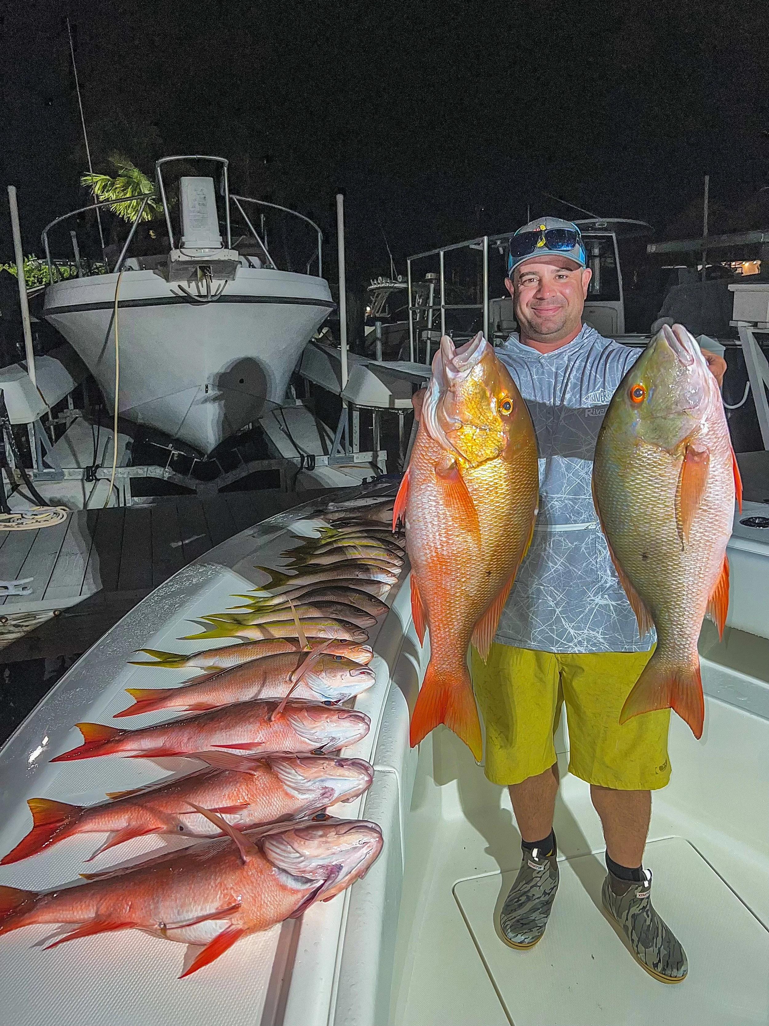 Captain Favorite! Experience a dynamic day on the water with our Reef and Wreck Fishing trip—venturing on the ocean side when the bite is hot and weather conditions allow. We'll target a wide variety of prized species, including Mutton Snapper, Yellowtail, Amberjack, Kingfish, Cero Mackerel, Sailfish, Tuna, Cubera Snapper, Black Grouper, Wahoo, and Mahi Mahi. If ocean conditions are rough, no worries—your adventure continues in the sheltered waters near the 7-Mile Bridge or in the Gulf targeting additional species.